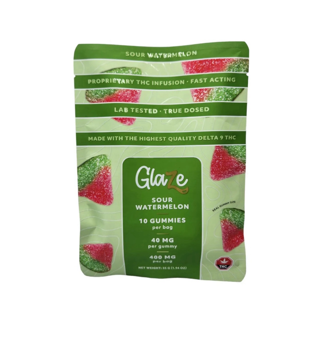 Glaze THC Sour Gummy Edibles – 5 Fruit Flavors 40mg/piece (10-Pack Gummy)